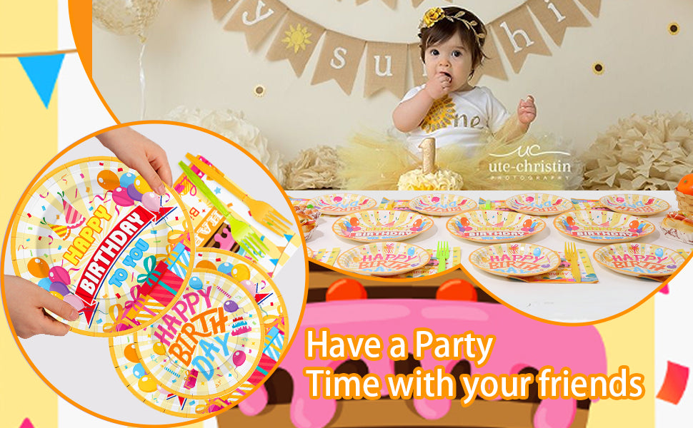 Assiettes de fête d'anniversaire, 96 pièces, vaisselle jetable
