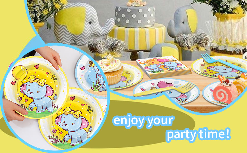 Atmosphère joyeuse : laissez le charmant design d'éléphant insuffler à votre fête un sentiment de jeu et d'émerveillement.