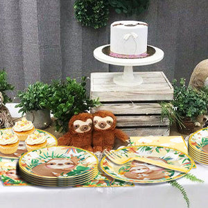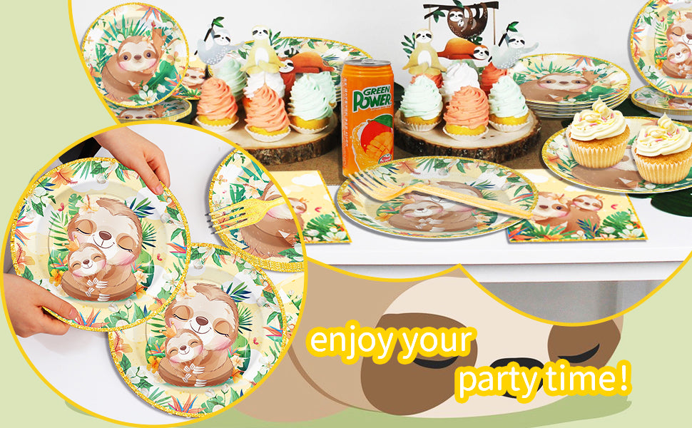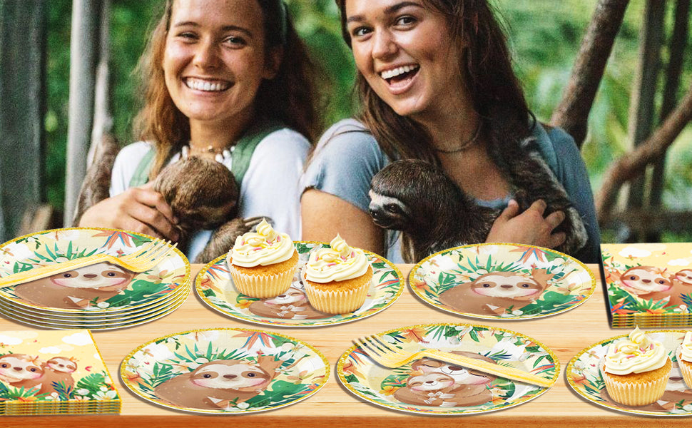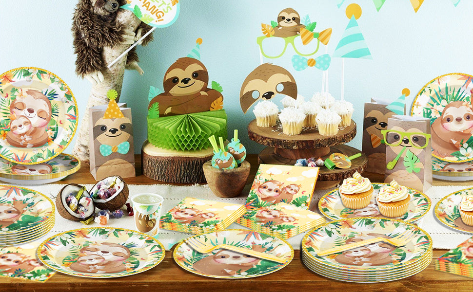 Ensembles de vaisselle jetables, assiettes de fête en forme d'animaux paresseux, 96 pièces